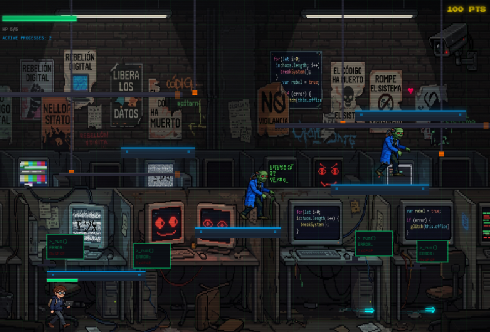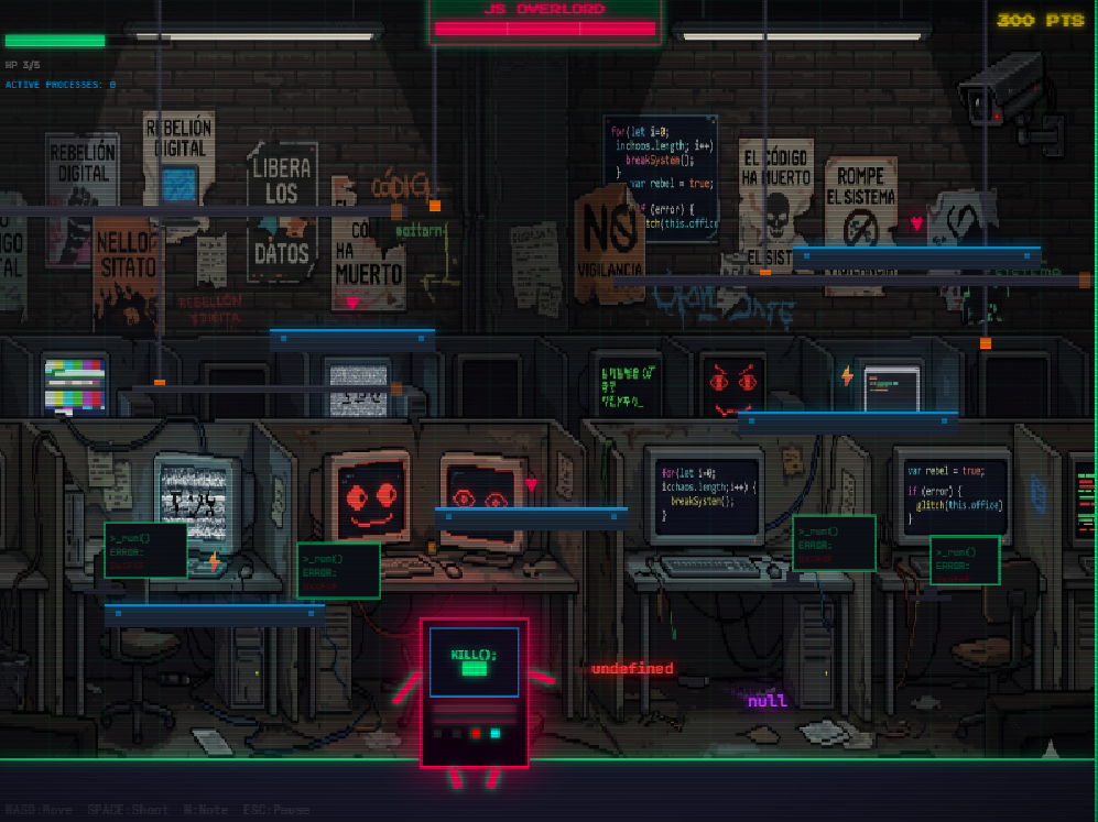 In a digital dystopia, an AI Overlord has automated the world’s infrastructure, turning developers into mindless digital zombies. As a rogue Software Engineer, you must infiltrate the core system and use raw syntax to breach firewalls, liberate processing nodes, and reclaim the codebase from the JS Overlord.